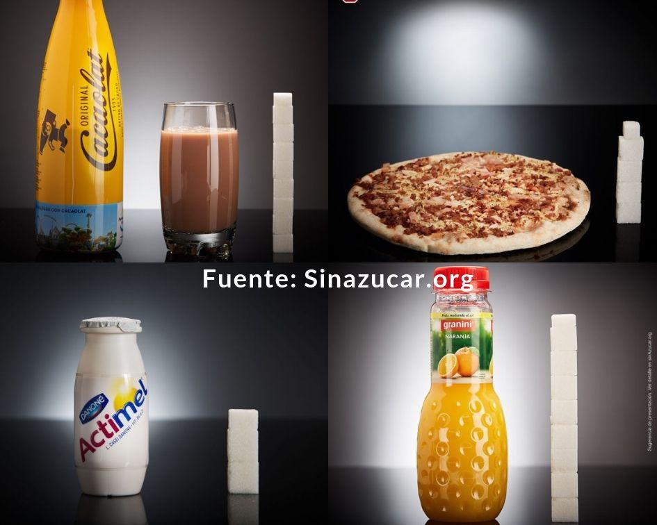 Aquí podéis ver un ejemplo del azúcar que contienen diferentes alimentos: