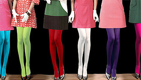 Recuerdo siendo pequeña que se llevaban las medias brillantes de colores (blancas, grises, rosas...) Hoy día no me atrevo a tanto (¿¿¡¡en serio que yo me he puesto medias blancas!!??) pero sí tengo en mi armario un amplio surtido de medias tupidas de diferentes colores (morado, burdeos, añil, verde botella, gris marengo y negro, por supuesto).