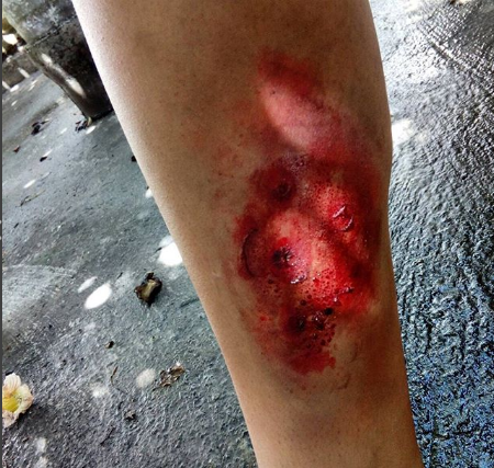Si la lesión es profunda se pudiese en primera instancia, tratarla tratando de lavarla, desinfectarla y comprimirla en tu hogar, pero lo ideal es ir a un especialista, para que no se complique esa lesión.