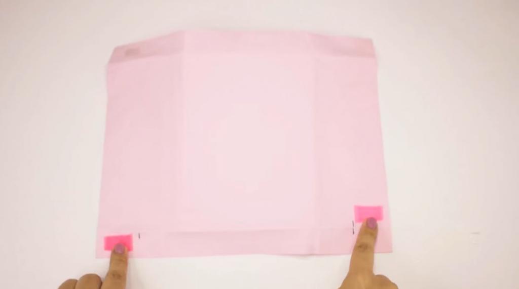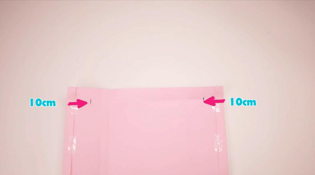 Partiendo de los laterales o costados vamos a medir 10 cm y marcamos.