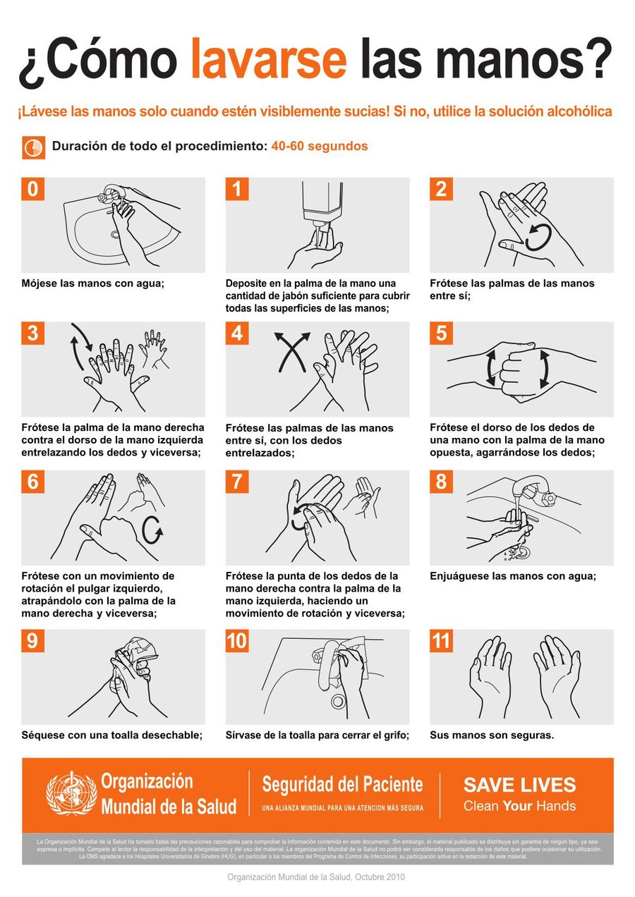 Para asegurar una limpieza idónea de manos debes frotar muy bien tanto las palmas como el dorso. Con movimientos circulares incide en los pulgares. No te olvides de las puntas de los dedos.Desde la Organización Mundial de la Salud nos aconsejan seguir estos pasos: