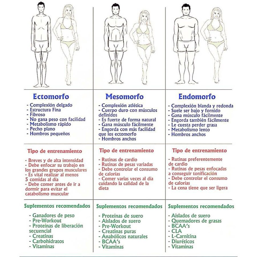 En mesomorfos (atléticos, con facilidad para aumentar de peso por aumento de masa muscular y que eliminan grasas con relativa facilidad) sugiero el consumo de proteínas y aminoácidos esenciales.