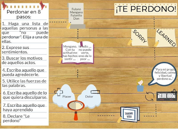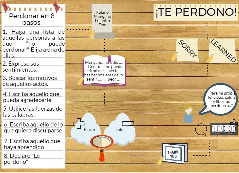 Aquí les traje dos opciones para comenzar a perdonar a quienes les han lastimada do dándole así respuesta a nuestra pregunta inicial, de que si es posible perdonar si nos lo proponemos hacerlo. Ya para terminar les compartiré en una infografía los ocho pasos que Nogushi escribe en su libro, donde la madre de Yuta los pone en práctica como ilustración de que es posible realizarlos: