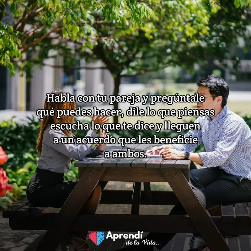 Piénsalo así: Si van a terapia, después de varias sesiones, el psicólogo les pedirá que se hablen con honestidad, que digan por qué se sienten con dudas y expresen al menos una idea de cómo solucionarloEsta idea no tiene por qué ser agradable para su pareja, pero es tan solo una idea, no es la solución definitiva.