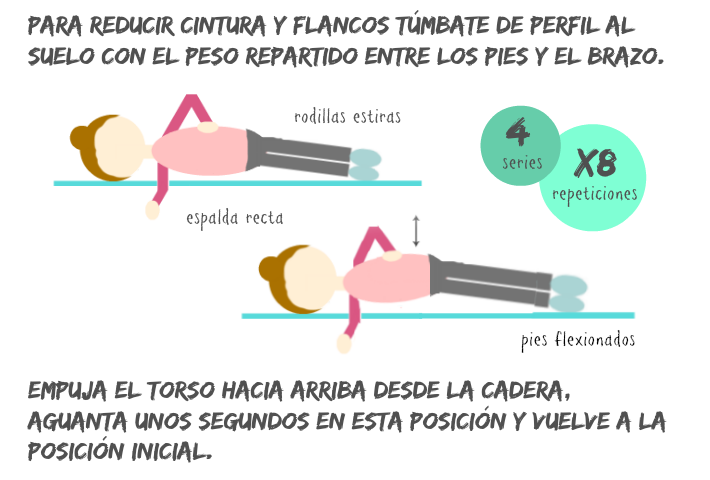 Como una de las zonas por la que más me preguntáis es la cintura y "aquello que se asoma por el pantalón", el ejercicio de hoy es justo para eso, ideal para definir y reducir la cintura y despedirnos de los molestos flancos.