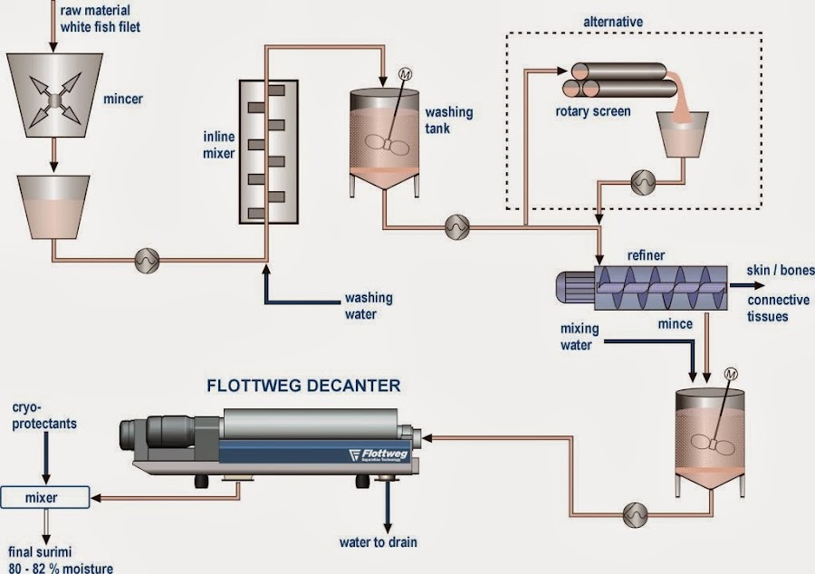 Su proceso de elaboración implica eliminar todo aquello que puede considerarse no funcional, es decir, grasa, escamas, espinas, tripas... con el fin de conseguir una masa de actomiosina (es la unión de las dos proteínas encargadas de la contractilidad muscular, actina y miosina) con un contenido acuoso similar al original del músculo.