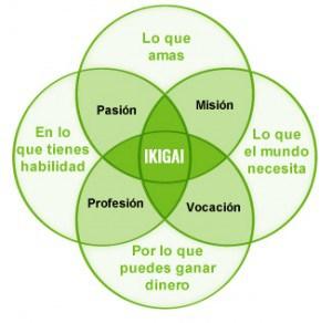 El siguiente esquema representa la manera como los japoneses consideran y buscan su Ikigai: