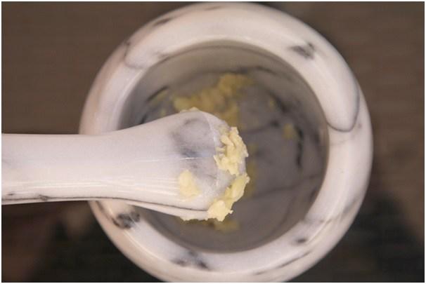 Machacar el diente de ajo, rallar el jengibre y exprimir el limón.