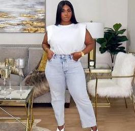 Una camiseta con hombreras + jeans mom + zapatos blancos