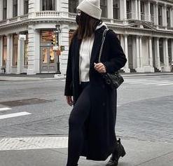 Cuando quieres parecer una celebridad que espera que los paparazzi no te vean, no puedes equivocarte con un conjunto completamente negro. Una base de pantalones ajustados negros y un cuello alto negro te hacen completamente bajo perfil aquí con la adición de un blazer estructurado y botas hasta la rodilla que te da la elegancia que necesitas.KRISP Blazer Mujer Largo Boyfriend Chaqueta Larga...