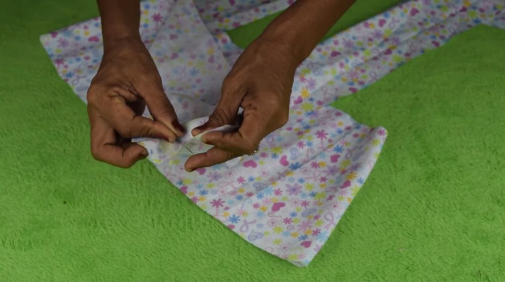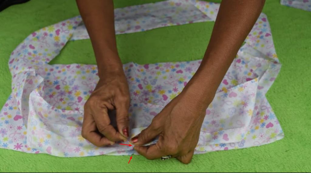 Realizaremos el mismo procedimiento con las otras dos piezas sobrantes de 10 cm, pero estas las vamos a ubicar arriba de estas con un poco más de fruncido en la tela, este se notará más que el anterior, de igual manera haces los piquetes referenciales y realizas costura tomando en cuenta el fruncido.