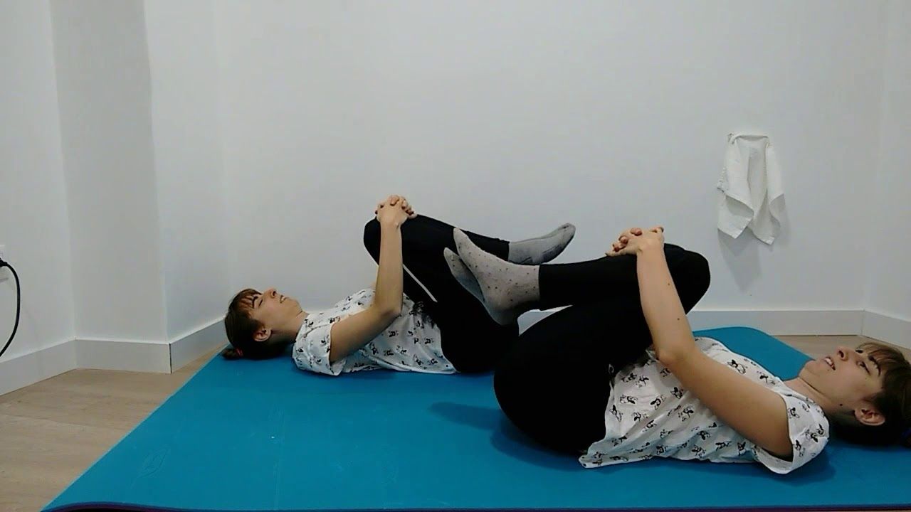 Otra recomendación excelente para estirar antes de descansar y así dormir mejor. En este caso, nos vamos a acostar boca arriba y abrazar fuertemente nuestras rodillas. Para liberar mayor tensión, abrazando nuestras rodillas vamos a mover nuestra cabeza de un lado a otro. Este tipo de ejercicio de estiramiento ayuda a liberar tensión generalizada en todo el organismo.Estiramiento de espalda