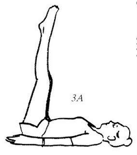Mantener la postura supina. Levantar las piernas. Flexionar las rodillas. Repetir diez veces. Esta postura estimula la circulación sanguinea y linfática, tonifica los abdominales bajos y mejora el funcionamiento intestinal.