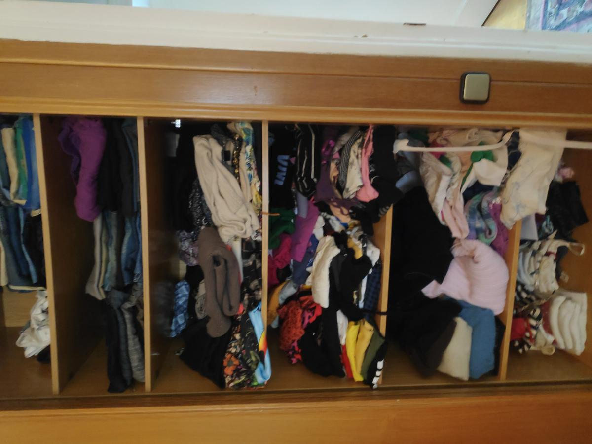 Ropa de deporte difícil de doblar, como los culotes de ciclismo…Pero lo importante es que cada cosa tenga su lugar y que todos los miembros de la familia se sientan a gusto.