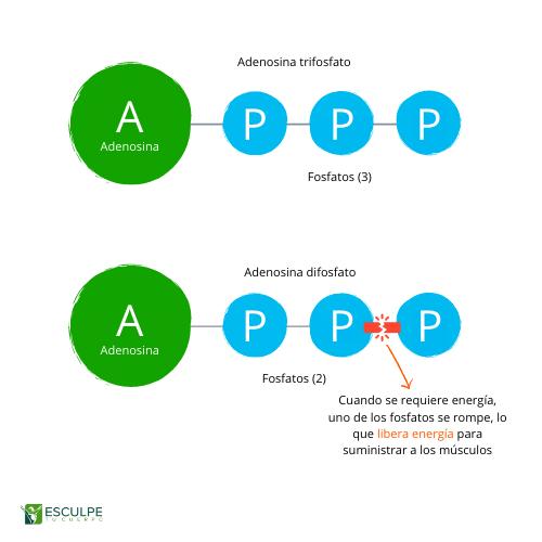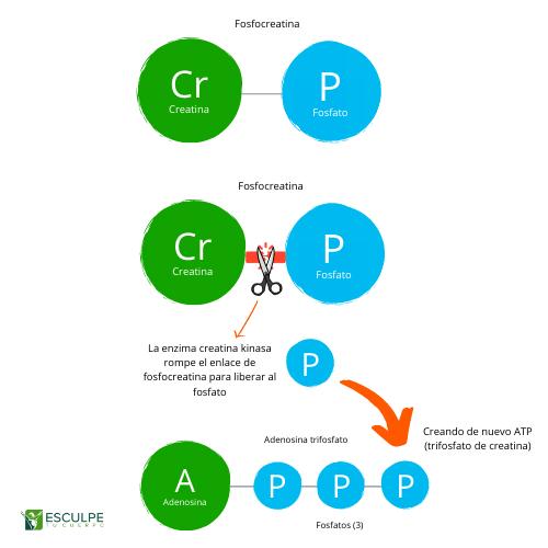 La creatina tiene una cualidad bastante conveniente: atrae y se enlaza de forma fácil con los llamados “fosfatos”, creando así a la fosfocreatina, la cual también se almacena en los músculos.Ahora, cuando tus músculos trabajan, usan la “moneda energética” del cuerpo humano: Adenosina Trifosfato (ATP por sus siglas en inglés).