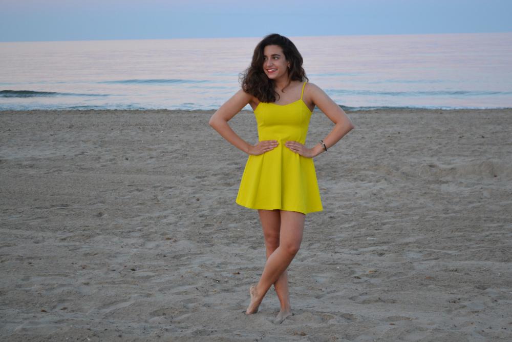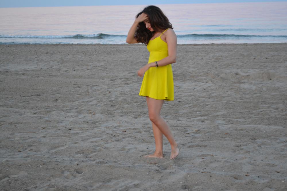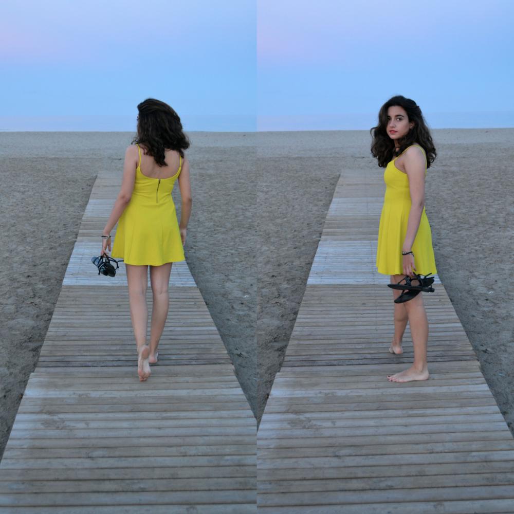 El segundo look, es muuuy sencillo pero llamativo, ya que al ser el vestido (ZARA) de color amarillo, el por si sólo ya llama la atención. Yo lo combinaría con unos complementos en negro, como estas sandalias de ZARA.