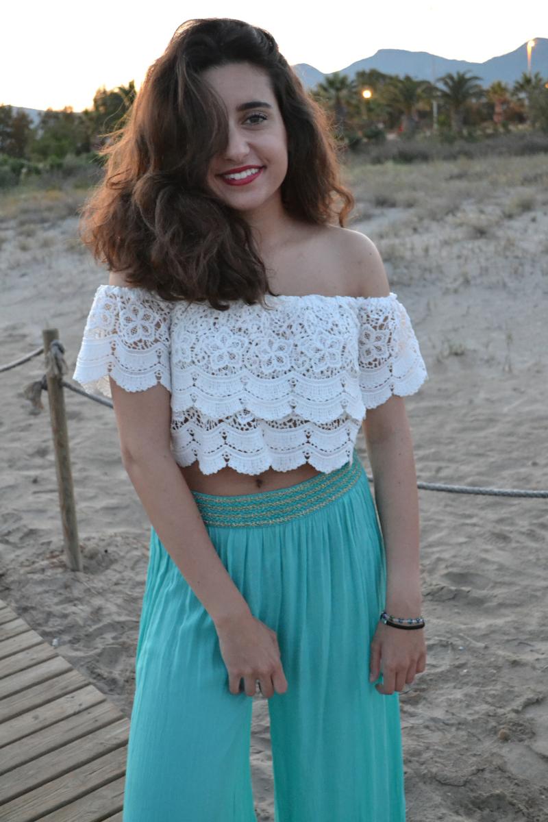 En este caso los pantalones me los compré el año pasado en Mallorca y la blusa es de Ibiza, pero en ZARA hay de un estilo muy parecido.