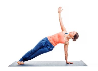 Una variedad igual de conocida de la postura de la tabla o plancha. Para hacerla solo debemos apoyarnos con una mano y la parte lateral del pie mientras mantenemos el cuerpo de costado formando una línea con las piernas. La otra mano se coloca hacia el techo con el fin de mantener el tronco bien recto.