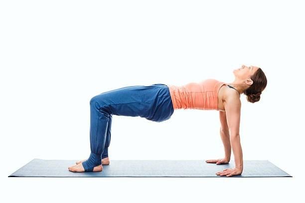 También es una variación de la phalakasana pero menos popular que la anterior. Nos apoyamos con las manos en el piso, pero ahora con el cuerpo viendo hacia arriba (igualmente procurando no sobre extender los brazos). Un cambio notable de este asana es que nos apoyaremos con las plantas de los pies en lugar de las puntas, levantamos la cadera y dejamos el tronco en línea recta.