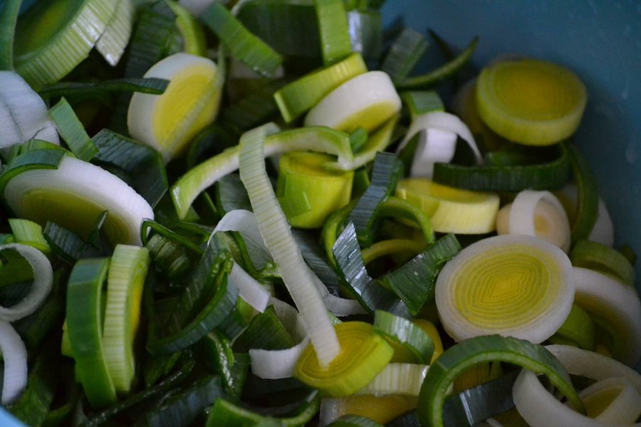 El puerro es de sabor suave y su forma es como una especie de cebolla alargada