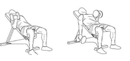 1. Curl con mancuernas inclinado: Un ejercicio de posición estirada en el que la mayoría de la tensión se da en los bíceps la sentirán en la parte inferior o en la posición completamente estirada. Este es uno de mis ejercicios favoritos, porque no puedes hacer fuerza con nada más que no sean los bíceps, nos permite trabar el brazo, para así mantener inmóvil el codo, y lograr una mayor intensidad.