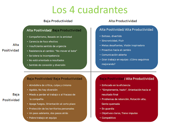 El modelo ideal será el de alta productividad y alta positividad, en el que todo el mundo hace lo correcto porque sabe hacia dónde se dirige. Será un equipo motivado, alegre, exitoso, en el que la comunicación fluye sin problemas.