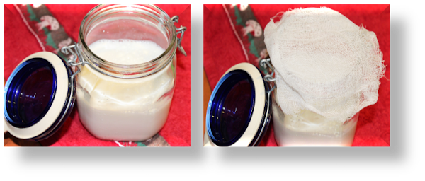 También modifiqué la manera de taparlos. A partir de ese momento, empecé a cubrirlos con una gasa o papel de cocina y dejarlos con la tapa entreabierta, no cerrada. De esta manera he conseguido encontrar "el punto" perfecto de mi kéfir. Con la acidez justa y la cremosidad de un yogur batido.