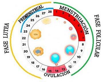 Fase folicular: desde el día 1 de la menstruación hasta los 12 primeros días, en la que se produce la maduración del folículo y éste se rompe y da lugar a la liberación del óvulo (ovulación) el día 15, impidiendo la fecundación del óvulo.