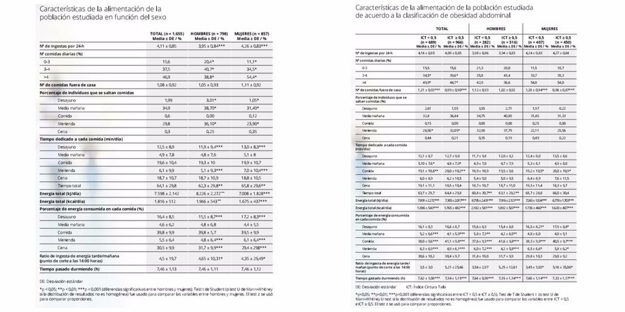 Así lo ha querido demostrar la revista Public Health Nutrition con la publicación de una nueva investigación: "Diferencias en los patrones alimentarios y horarios de ingesta en las comidas con respecto a la obesidad abdominal en el estudio científico ANIBES". Haciendo hincapié en la frecuencia de las diferentes comidas, el tiempo empleado en las mismas, así como los patrones de consumo de nutrientes y comidas relacionados con la obesidad abdominal.