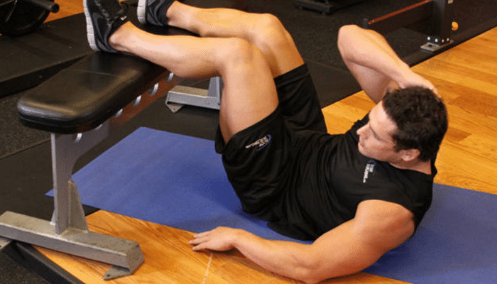 Ejercicio Nº Tres: Abdominales para oblicuos en banco declinable. (Dos series de seis a ocho repeticiones)