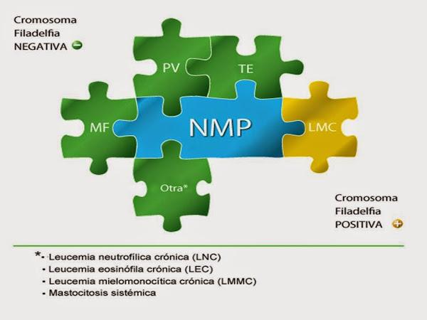 En 2008 la Organización Mundial de la Salud (OMS) propuso una nueva clasificación de los SMP, incorporando criterios clínicos, morfológicos y genéticos, que tiene implicaciones diagnósticas, pronosticas y terapéuticas, pasando a denominarse Neoplasias Mieloproliferativas (NMP), entre las que se incluyen las siguientes entidades: Leucemia Mieloide Crónica (LMC), Policitemia Vera (PV), Trombocitemia Esencial (TE), Mielofibrosis Primaria (MFP), Leucemia Neutrofílica Crónica (LNC), Leucemia Eosinofílica Crónica (LEC), Mastocitosis y Neoplasias Mieloproliferativas no clasificables (NMPNC).