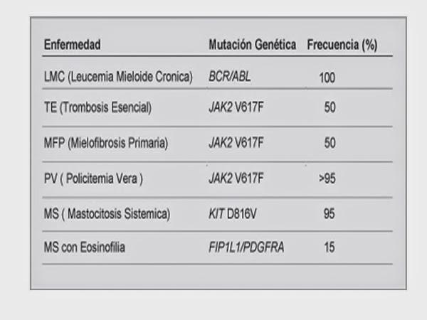 Presencia de JAK2V617F ?positivo en el 60% de los casos- ó MPL W515K/L.