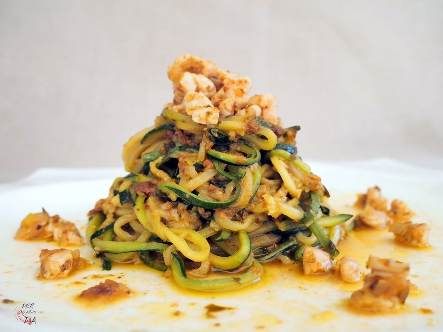 Espaguetis de Calabacín y Pesto Rosso