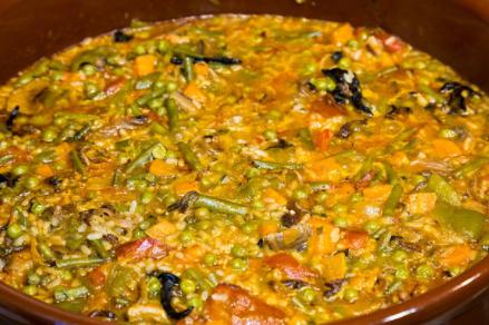 Pasados unos 15 minutos los vegetales ya deberían estar más que listos y tendremos un fondo con bastante sabor. Debemos entonces agregar el arroz y cocinarlo durante unos 7 minutos a fuego máximo para luego rebajarlo a fuego lento durante unos 10 minutos más. Cuando el arroz se encuentre listo solo deberemos dejar reposar nuestra paella unos cuantos minutos antes de servir.