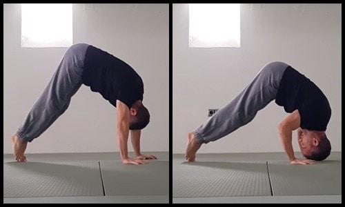 En este ejercicio nos colocaremos en esta posición y bajaremos nuestro cuerpo, esto funciona como un press militar de hombros, pero casero.