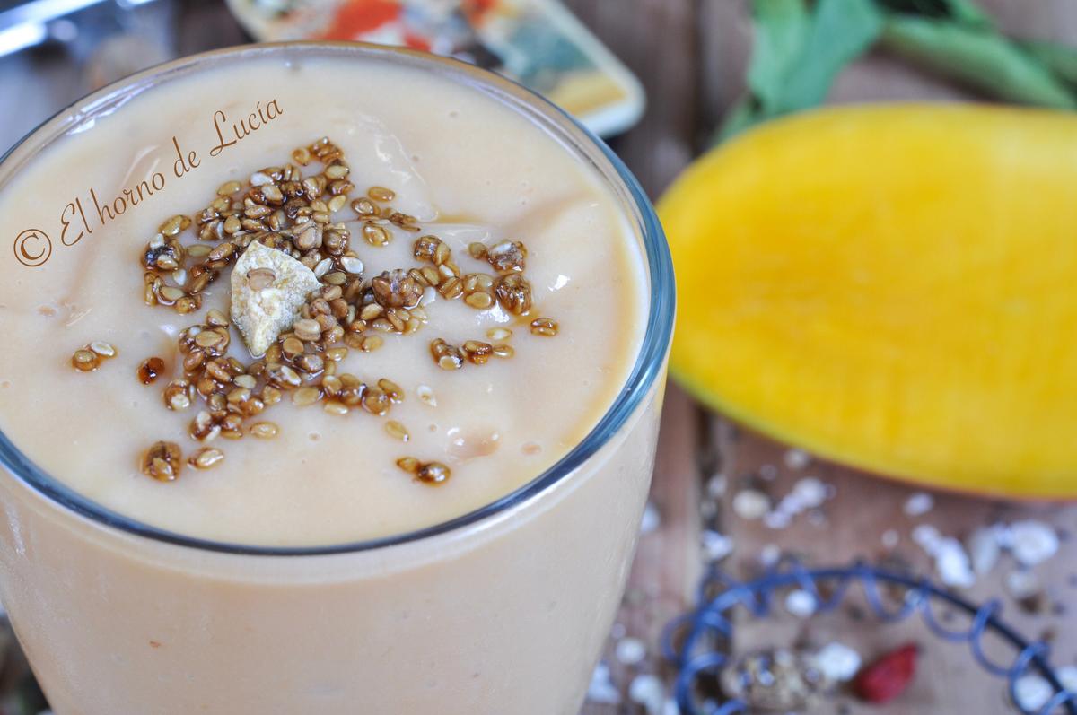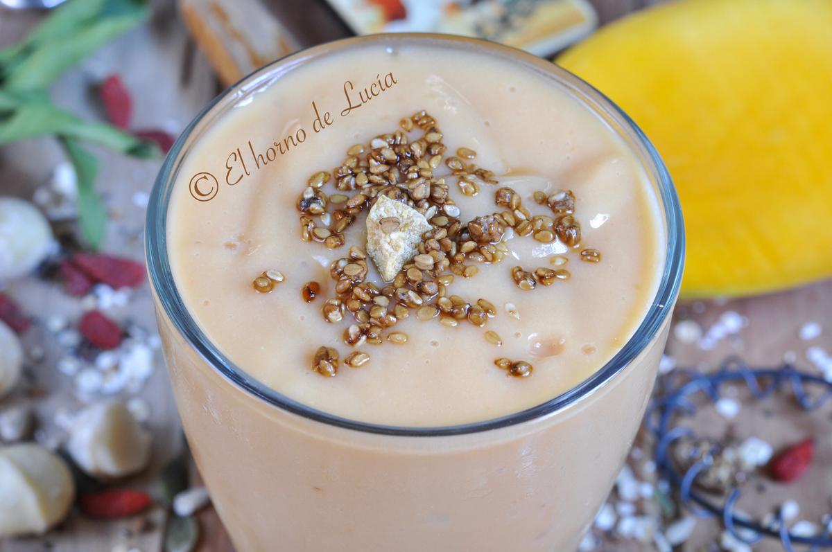 Empieza la temporada de mango, del que se cultiva en España claro. Que el tropical lo tenemos todo el año.Y tenemos también de temporada los melocotones de Calanda.Uniendo una de mis frutas favoritas, a una de la tierra de mi familia paterna, vamos a preparar un nutritivo y saludable smoothie.Hoy voy a la carrera así que os dejo ya tranquilos y no me enrollo más Os dejo con la receta.Ingredientes ...