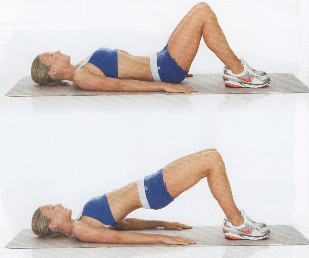 Elevación de cadera: debes tumbarte boca arriba, acostada en una superficie, apoyar los pies en el suelo y alinear las piernas, pero manteniendo las rodillas separadas.