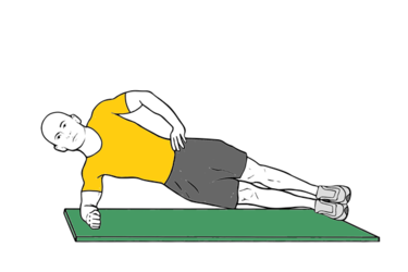 Plancha lateral: requiere acostarse en una superficie pero en posición de costado, creando un ángulo entre el pecho y el suelo. Debes ejercer fuerza y elevar tu cuerpo de manera que todo el peso esté repartido entre el antebrazo y el pie de ese lado.