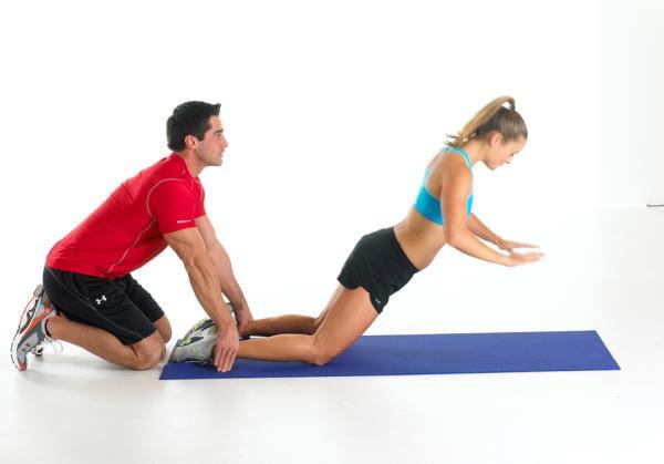 Isquiotibiales: te debes colocar de rodillas en el suelo, mantener la espalda recta y sujetar los tobillos. Tienes que caer hacia delante sin doblar la cintura y siempre frenar el cuerpo con la fuerza que ejerzas en las piernas.