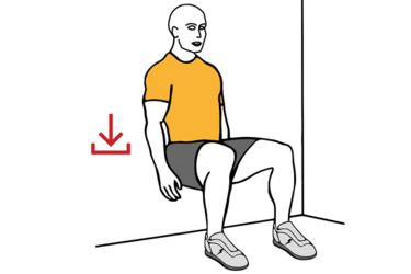Sentadillas: debes realizar la posición de la silla manteniendo la espalda apoyada en la pared. Los muslos deben quedar paralelo al suelo y la cara interna de las rodillas deben formar un ángulo de 90°.
