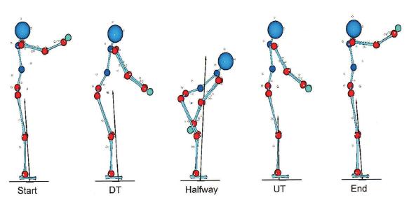 Transferencia efectiva de fuerzas desde la cadera hacia los brazos.