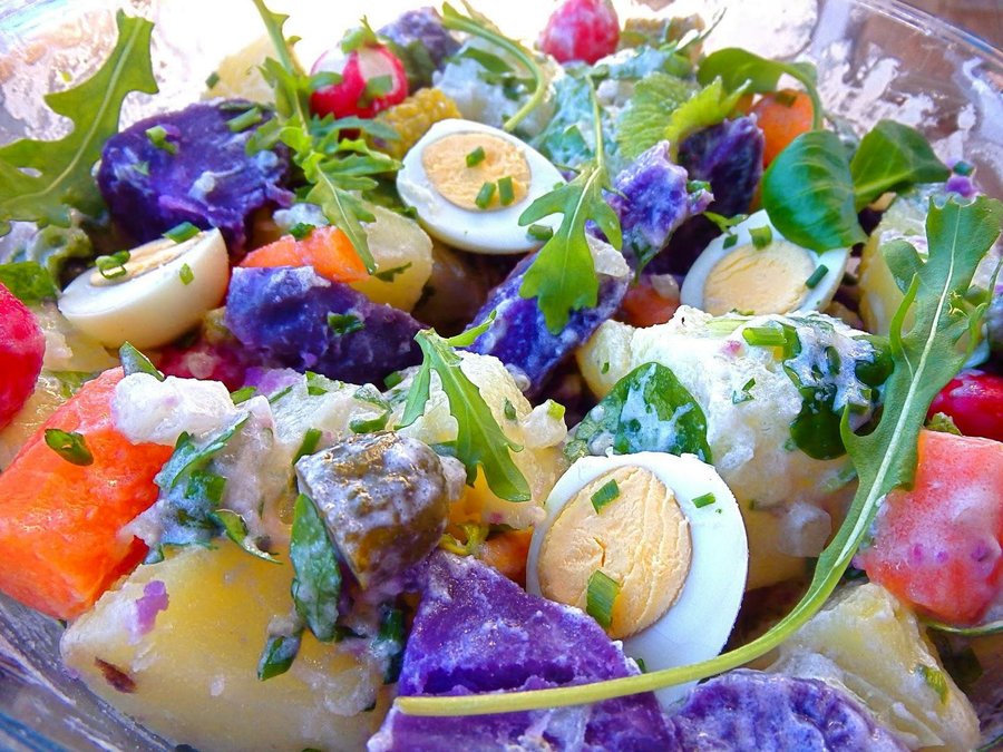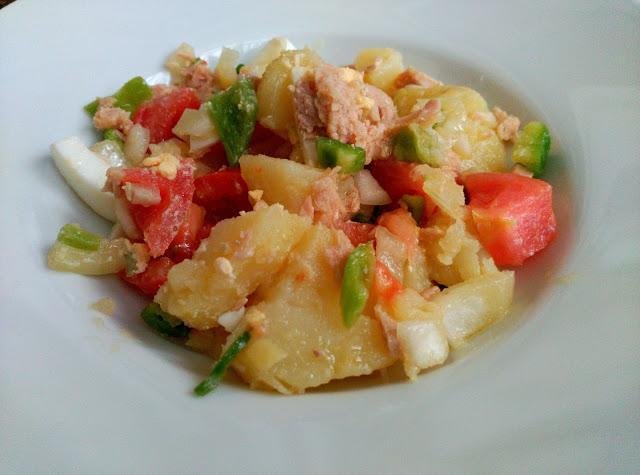 En el blog Cocina a Buenas Horas podemos encontrar una ensalada bastante completita que bien nos puede servir como plato único para una cenita ligera o un entre comidas. Con un aporte de hidratos que le da las patatas es ideal para esos días en que tenemos mucha actividad ya que nos aporta la energía que necesitaremos, además complementada con verduras y proteínas la convierten en una ensalada ideal. Puedes ver al detalle su elaboración haciendo clic a continuación: