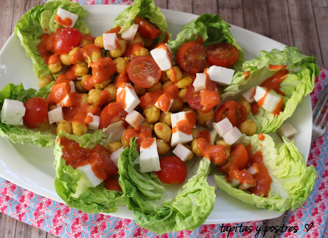 Otra receta muy completita por el aporte de hidratos de los garbanzos, dándole un toque diferente de sabor por el curry que lleva la receta, la vinagreta que lleva una base de balsámico y mayonesa le termina de dar un sabor deliciosos. En el blog Tapitas y Postres podrás ver al detalle su elaboración haciendo clic a continuación: