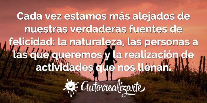 Pero ahora estamos mucho más alejados de nuestras verdaderas fuentes de felicidad: la naturaleza, las personas a las que queremos y la realización de actividades que nos llenan.