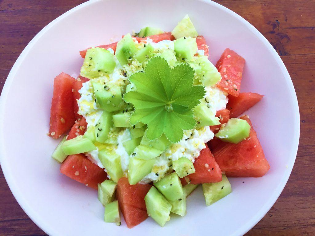 Esta es una opción muy apetecible en verano. En la foto tienes una de nuestras preferidas, pero las combinaciones son infinitas. Adáptalas a tu gusto y disfruta de un buen plato de nutrientes y agua:
