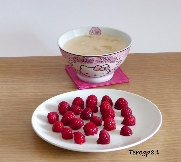 Las frambuesas que compro son de las congeladas del Lidl, las saco en el momento de comerlas y las pongo unos 40 segundos en el micro.