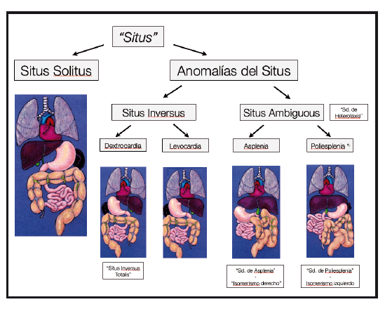 Breve resumen de la dextrocardia y el situs inversus El reciente fallecimiento de la exministra socialista Carme Chacón nos ha hecho conocedores a la mayoría de una cardiopatía congénita conocida como dextrocardía, más comúnmente denominada como 'síndrome del corazón al revés'.