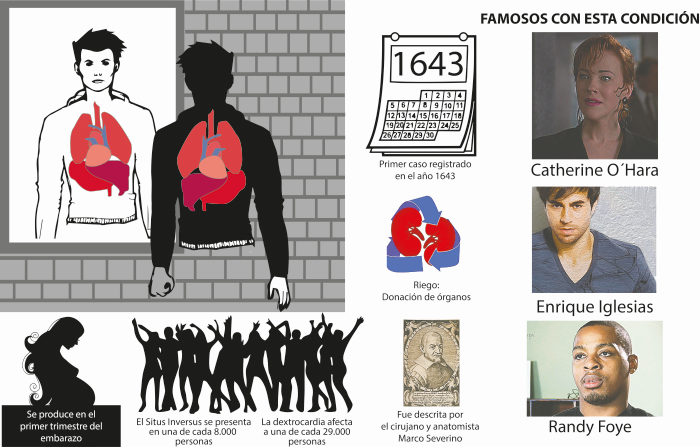 Es una afección poco frecuente, y se debe principalmente a que nuestro órgano vital está situado en el lado derecho del tórax en lugar del izquierdo. Como ya hemos indicado, es de tipo congénito y según el Texas Heart Institute Journal afecta a menos de un 1% de la población. El Situs Inversos Viscerum (latín), puede afectar a varios órganos y se corresponde con la alineación errónea de los mismos en nuestro cuerpo, colocándose al lado opuesto (imagen de espejo).