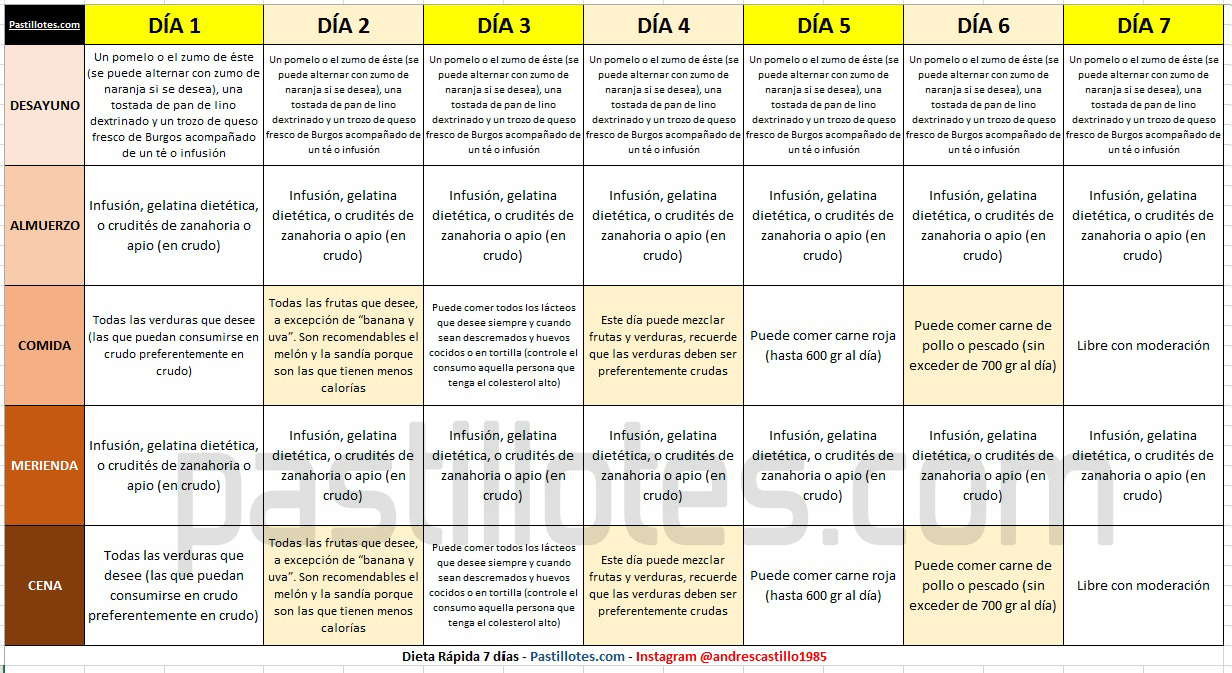 Te dejo aquí debajo una imagen para que puedas descargar en PDF o imprimir tu dieta rápida con menú 7 días sin pasar hambre. Compártela con tus amigos y amigas para tener un cuerpo fitness para el verano.Si te ha gustado nuestra página para perder peso en una semana no olvides compartirla con tus amigos y amigas. Un saludo!.