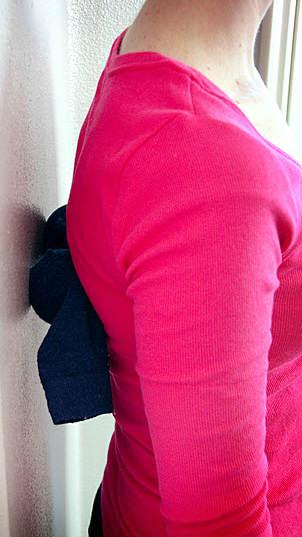 3. Inclínate hacia adelante y coloca una media con dos pelotas de tenis dentro detrás de los hombros, exactamente en la mitad de la espalda.
